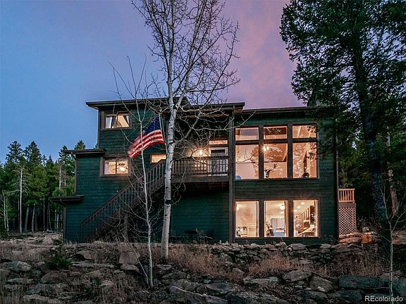 Backing to Arapahoe National Forest with impressive mountain views, this Conifer, Colorado mountain contemporary property is exactly what you have been waiting for. The open floor plan features a vaulted great room with warm wood floors, designer lighting & colors, and an attractive wood burning fireplace as the centerpiece for cozy winter evenings. The inviting kitchen features a spacious pantry, (that could be a butler's pantry) stainless steel KitchenAid appliances, & gleaming granite counter tops. The lower-level NEW apartment can be locked apart from the rest of the home so it could be used for a long- or short-term rental. Or, as-is, it is simply an elegant second living room with a bonus wet-bar, gas range & big beverage fridge! The primary suite is a show stopper with awesome views. This immaculate property feels like an interior designer's dream home. Newer roof, newer deck, new HVAC too! Come home to your own private retreat a beautiful 45-minute drive to the metro area.