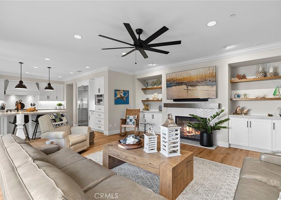 This stunning Villa in the exclusive gated community of Pacific Shores offers luxury and prime coastal living. The 4-bedroom, 4.5-bathroom home offers an exceptional layout with 3,604sqft of living space. The home features an epoxy coated 3-car garage with custom cabinets, and ocean views from the private third-floor suite. The main level features a fully renovated gourmet kitchen with Quartzsite countertops to include an expansive island, stainless steel appliances, and oversized refrigerator. The kitchen opens into the dining and living areas, which transition to the courtyard for seamless indoor/outdoor living while enjoying the integrated Sonos surround sound system. The second-floor master suite includes a walk-in closet, jetted tub, and a walk-in shower, with two more bedrooms and a loft to complete the second level. Additional features include new flooring throughout, custom built-ins, tankless water heater, dual-zone AC, custom lighting, and Central Vac. Community amenities include a pool, greenbelts, and playground. Located within walking distance to Huntington Beach, and a short bike ride to downtown. Along with access to award-winning schools, this home offers the ultimate coastal lifestyle.