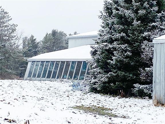 On 132 acres in Fredonia is this rustic and unique home! Beautiful natural wood on the ceilings, walls and trim this home is a one of a kind. Great for a hunting lodge, retreat or family home. The first floor has 2 bedrooms, 1.5 baths,, an office, living room, dining room, kitchen, laundry room and an unheated glass atrium room for plant growing. The second floor has another bedroom and half bath, and unheated study bathed in light from the many skylights. In the front of the house is a 4 car barn/garage. There is also a full basement, that was used as a woodshop with extra high ceilings. Free gas from gas well allows for no heat bills! Rustic and simple, not a home with frills, but the thick wood doors, flooring and beams have amazing craftsmanship! Lots of acreage to roam, raise animals or use for recreational activities or simply privacy.