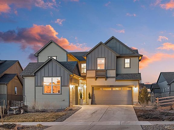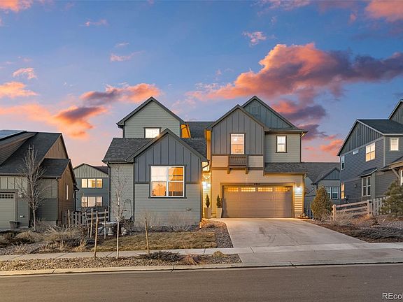 Amazing 2-story home in Sterling Ranch built by Meritage. Great street appeal. Beautiful and extensive upgraded floors throughout. Over 4,600 total square feet. Open, bright and airy. Incredible kitchen with large island, quartz countertops, maple truffle cabinets, high-end stainless steel appliances and massive pantry. Custom lighting throughout. Open floor plan with great room and dining area off the kitchen ideal for entertaining. Cozy fireplace with tile surround and custom mantle. The main level also features a private study with French doors, bonus built-in workspace area with cabinets and mudroom. Elegant, large primary bedroom with spacious, upgraded primary bath and huge walk-in closet makes this a true retreat. Three additional secondary bedrooms (one with en-suite full bath), another full bath and laundry round out the second level. Beautifully full finished basement with custom wet bar, large recreation/second family room, exercise room, 5th bedroom and 3/4 bath. Enjoy the outdoor space with landscaped backyard, back patio and Vita hot tub that is included. 3- car garage (oversized 2-car with additional 1-car bay). Brand new carpet in main floor study and entire second floor. Close to open space and miles of hiking and biking trails. Community amenities feature a clubhouse, pool and fitness center. Meticulously maintained. You will not be disappointed.