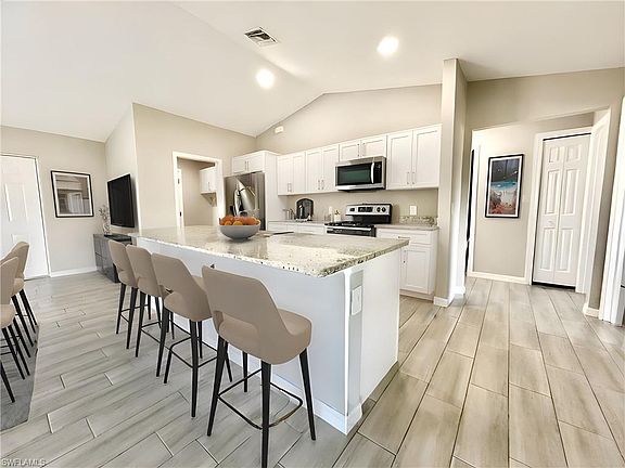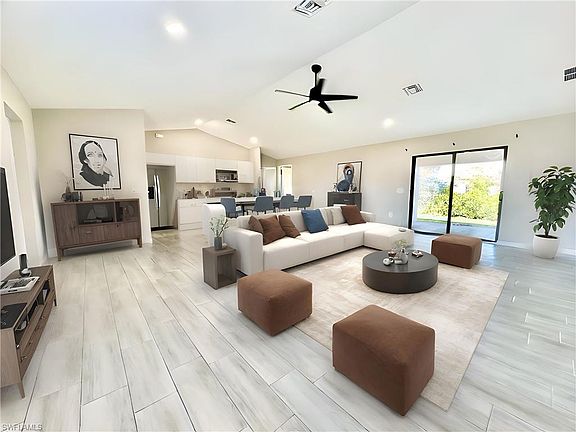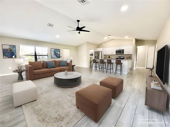 Excellent condition, nearly new home, built May 2023. Tons of upgrades: whole home reverse osmosis, generator hookups, expanded 3-car-wide driveway, epoxy garage flooring, wood-look tile throughout, quartz counters, hurricane impact windows and doors, stainless steel appliances. Smart home features including Nest thermostat, Ring doorbell, and Wi-Fi deadbolt with keypad access. The home boasts just under 1700sqft including 4 spacious bedrooms and 2 full bathrooms. Walk-in closet in master. Open concept great room with vaulted ceilings and split bedrooms for additional privacy. No HOA fees. Some photos in this listing have been virtually rendered.