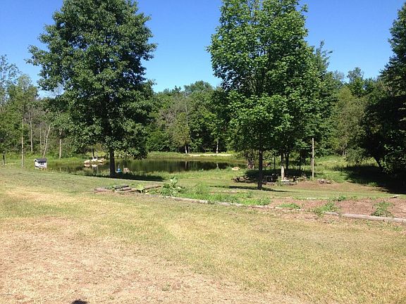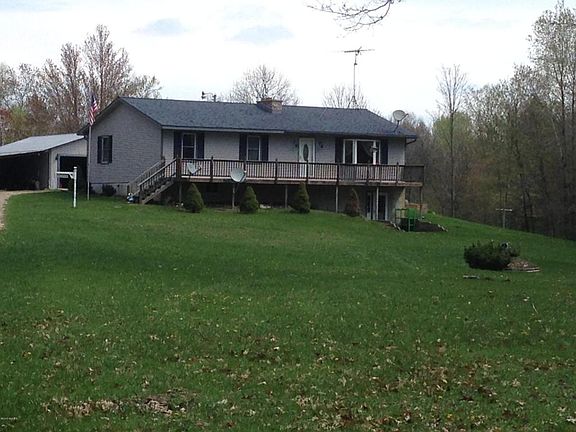 39 wooded acres with creek running thru a portion of property and a large swimming/fishing pond. This spacious home includes numerous updates: full bath with jet tub and shower, floor coverings, roof, windows, HVAC, electrical. There is a large living area w/fireplace that is open to the kitchen and dining area. Front deck on runs the length of the home, full - mostly finished - walkout basement w/possible two bedrooms, full bath and family room w/another fireplace. Decorative stone patio below plus nice landscaped flower area w/pond. Large pole barn, and the property is loaded with wildlife.