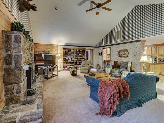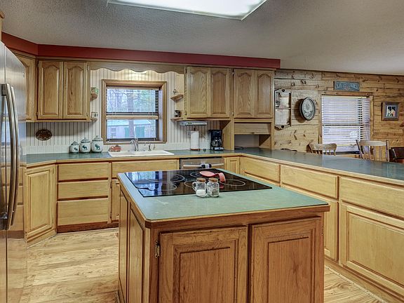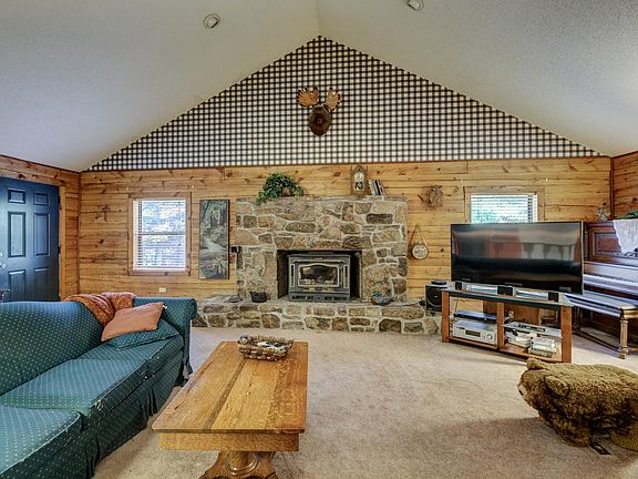 Beautiful large log home on 1.8 acres on the South edge of Joplin. Walkout basement. Large shop on property
