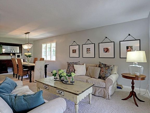 Charming & exceptional in every way w/ luxury & sophistication at every turn! Beautiful single level on expansive wooded lot. Open floorplan w/abundant light,soaring ceilings & unparalleled style. Custom paint colors, wide plank hardwood floors, designer fixtures & plantation shutters enhance this stylish & welcoming residence. Beautiful views from gourmet chefs kitchen w/ quartz island. Resort retreat backyard w/ sparkling pool, spa, & relaxing waterfall. Vacation right at home!