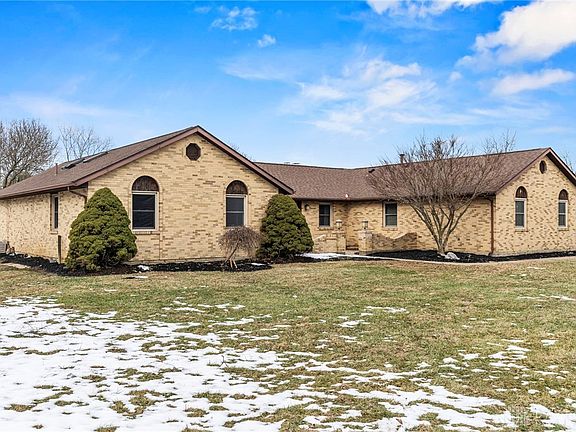 Welcome to this beautifully maintained 3-bedroom, 2.5-bathroom brick ranch, offering 2,750 sq. ft. of living space on a sprawling 5-acre lot. This home perfectly blends comfort, space, and functionality, making it an ideal retreat. Step into the open-concept kitchen, featuring vaulted ceilings, ample cabinetry, and a spacious island for extra prep space. The main level boasts a large living room and a cozy family room, providing plenty of room for relaxation and entertaining. The primary suite includes an attached full bathroom and a walk-in closet for added convenience. Downstairs, the finished basement offers a generous recreation room, perfect for gatherings, hobbies, or a home theater. At the back of the home, a Florida room/screened-in patio allows you to enjoy the outdoors year-round. The exterior is just as impressive! Enjoy summer days by the in-ground pool, complete with a covered back deck for shaded relaxation. The property also features a 2-car attached garage, a 1-car detached garage, and a pole barn—ideal for storage, a workshop, or hobbies. All of this is located just 5-10 minutes from WPAFB, offering both privacy and convenience. Don’t miss your chance to own this incredible property—schedule your showing today!
