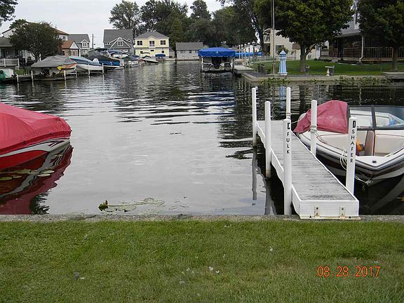 Here is your chance to have full access to Lake Wawasee without the outrageous price. A deeded pier is literally right across the street. In Marineland Gardens Subdivision you are deeded a pier slip, the us of a private concrete boat launch and a common area at the head of the channel overlooking the entire lake. The house itself has much to offer with lots of potential. The spacious corner lot with enormous shade trees and large yard are great for entertaining. The 2 car detached garage with covered roofed pavilion is great for toys. The house features 1440 sf of finished area with 3 bedrooms, 1 bath plus a very large family room. Make this home yours!