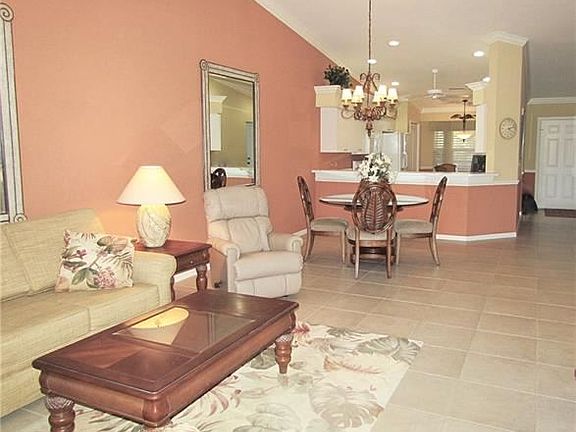 END UNIT ABBEY!! This 2 BR, 2 BATH, + DEN Veranda is a must see. Tommy Bahama style furniture offers the feel of Florida inspired living. Open floor plan with vaulted ceilings deliver a comfortable living space. Natural light can be found throughout. Spacious kitchen with breakfast room. Den with extensive built ins. Master BR has private ensuite w/ separate walk-in shower & soaking tub. Master & Guest BR's host walk-in closets. Guest BR, guest bath & den can be closed off to create a private suite. Neutral tile throughout main living areas (entry, kitchen, hallway, dining, living room, den and baths) with carpet in bedrooms. Enjoy 2 screened lanais & a garage. Located on a quite street with both water and golf course views. Just a short stroll to the clubhouse. Naples Heritage is a beautifully landscaped, gated, bundled golf community situated on 550 acres of pristine lakes & preserves. The 18 hole golf course, putting green, driving range, renovated clubhouse w/ pro shop, resort style pool, 6 Har Tru tennis courts, pickleball courts, bocce ball, fitness center, poolside cabana & bar are all part of the Naples Heritage lifestyle. Just minutes from downtown & beaches.