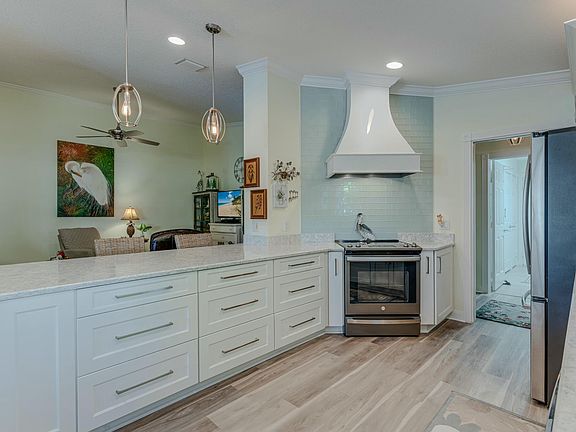 Experience the charm of simple luxury living in this beautifully renovated 2/2 villa nestled within a gated community offering a wealth of amenities. This meticulously updated home features a brand-new kitchen with a sleek hooded vent and stunning glass backsplash. The bathrooms have been thoughtfully modernized, while crown molding and plantation shutters add a touch of elegance throughoutEnjoy the outdoors with a NEW saltwater pool (2019) complete with a screened enclosure and a wade area for lounging. The oversized side yard, lined with lush new ferns and palm trees, provides a serene oasis. Additional upgrades include hurricane shutters (2019), a replaced AC unit (2018), new ceiling fans (2021), and a solar blanket for energy savings. This impeccably maintained home also boasts new appliances, flooring, and a washer/dryer (2023). Every detail has been carefully considered, ensuring a move-in-ready retreat that's as functional as it is beautiful.