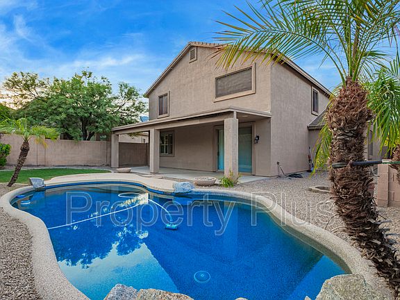 This beautiful, move-in ready home is located in desirable Westwing Mountain. The community offers many amenities, is close to shopping, and offers amazing mountain views. Rare to find 5 bedrooms, 3 bathrooms and a 3 car garage w/ storage cabinets.. Spacious floor plan with ample storage. Well thought out kitchen layout with walk in pantry, granite countertops and a breakfast bar open to the family room. Stainless steel appliances included. The expansive master suite offers separate tub and shower, dual sinks and a large walk in closet. Just in time for summer, the sparking pool in he backyard is perfect for entertaining. Owner is paying for weekly pool service, front and back landscaping and monthly pest control.