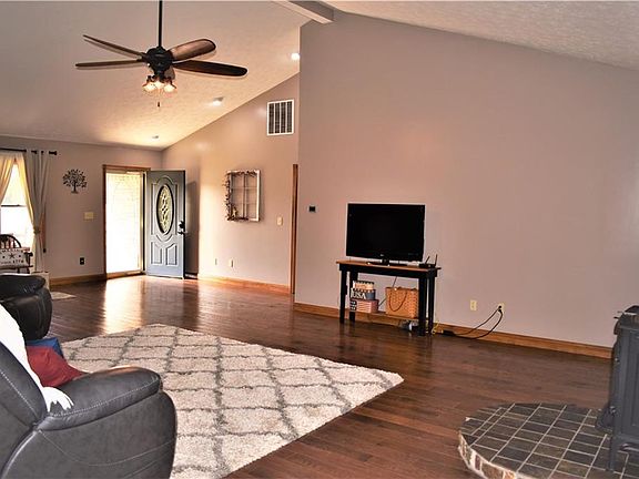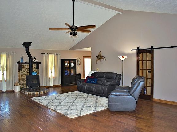 Built To Exacting Specifications, this 3 bedroom, 2 bath all-brick custom ranch on an acre exceeds expectations. Fall in love with the palatial sized great room w/vaulted ceiling & cozy wood-burning stove, indulgent master suite w/his & her walk-in closets, soaking tub, sep shower & tray ceiling, open kitchen built for entertaining w/tons of white cabinetry, dark counters, new backsplash, all appliances, center isld & walk-in pantry, big bedrooms, gleaming hardwood floors, arched wood windows, custom blinds & updated lighting. Plus, welcoming covered front porch, open patio in rear, fire-pit, mini-barn w/loft and 3-car garage. HOME!!