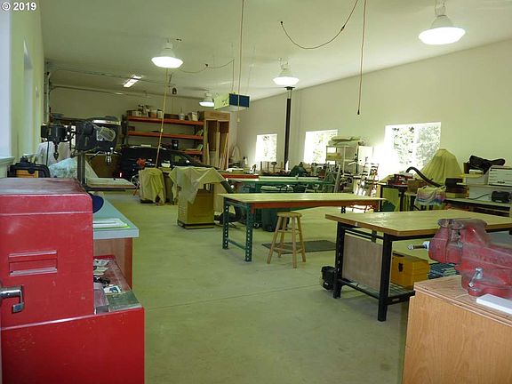 Hobbyist's dream on .84 acre! 900 sqft 1 bdrm, 1 bath "Super Good Cents" home with solid surface counters & tiled & vinyl planking floors sits above 30' x 30' finished insulated garage; 10' door; Corian sink, 1/2 bath & laundry. Separate fully finished insulated 30' x 60' with 12' door attached shop, both with 2x6 exterior construction. 50 year roof. Architectural preliminary plans available. Full RV hookups