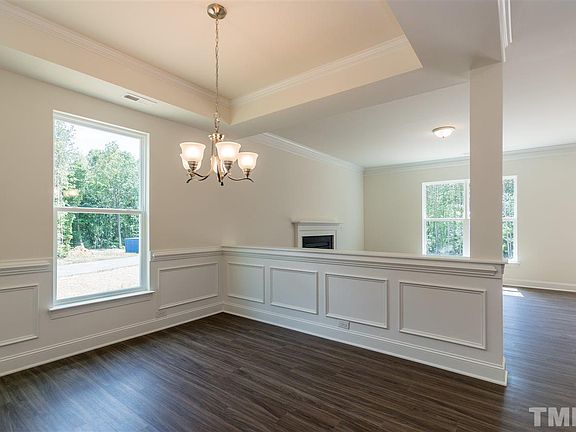 Corner homesite, trees! Designer kitchen, Granite counters, stainless steel appliances, back splash, EVP throughout main floors, 4 Bedrooms on 2nd floor plus bonus with full bath and closet on 3rd floor. Ready now! Honeycutt Landing is a pool community, 10 mins from future 540, ponds in neighborhood are stocked, country living convenient to downtown Raleigh, Wake County schools, farm stand across the road for fresh fruit, vegetables and local ice cream! Sought after neighborhood, beautiful home!