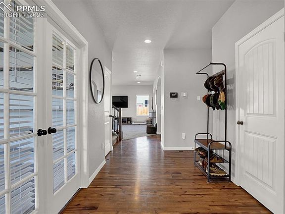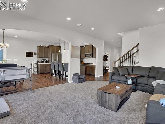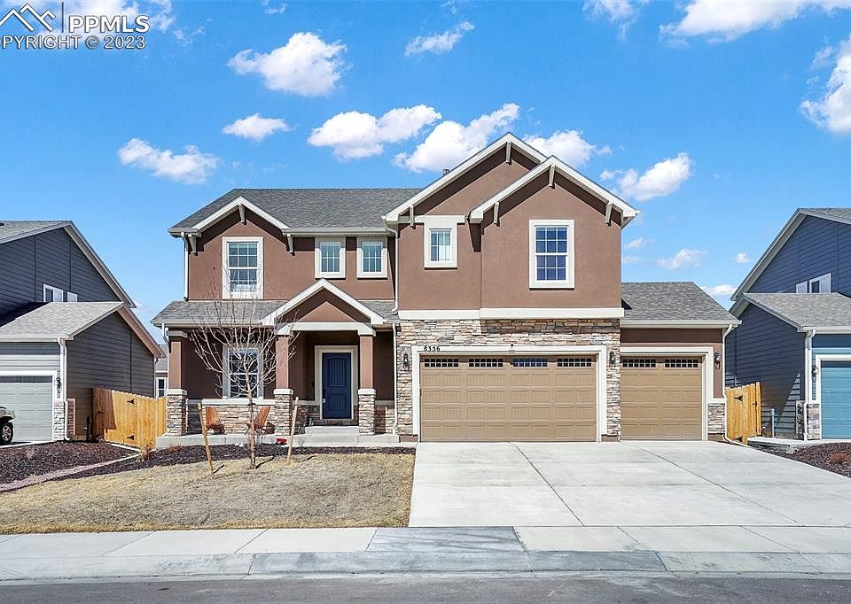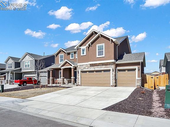 Upgraded Challenger Home finished in 2022 in Highly Desirable Branding Iron at Sterling Ranch nestled on the South end of Black Forest - ****4 CAR GARAGE**** with 3 Bedrooms plus an Office on the Main, 2.5 Baths and a full unfinished basement ready for more! TONS of Upgrades! Kitchen with Quartz counters, Gas range top, huge island and Double Ovens, composite sink, soft-close drawers and cabinets throughout the home. Warm and cozy family room on the main level, plus the large office and a 1/2 Bath. Upstairs has a HUGE 25x21 Loft! Double doors into the Sweet Master Suite with walk-in closet, 5 piece bath with upgraded counter and shower and tons of natural light. Laundry upstairs where you need it. 2 More bedrooms both with Walk-in Closets and a full bath. Unfinished basement with Roughed in Bathroom and Wet Bar plumbing. Covered back patio that was upgraded with a lot of additional concrete. Fully landscaped yard and the back yard is fenced, plus a new play system for the kids. Top down/bottom up window coverings. Exterior has outlets ready for Christmas lights, Garage has two separate 208v circuits, and all bedrooms and back patio are wired for ceiling fans. Quick close and Move-in Ready!