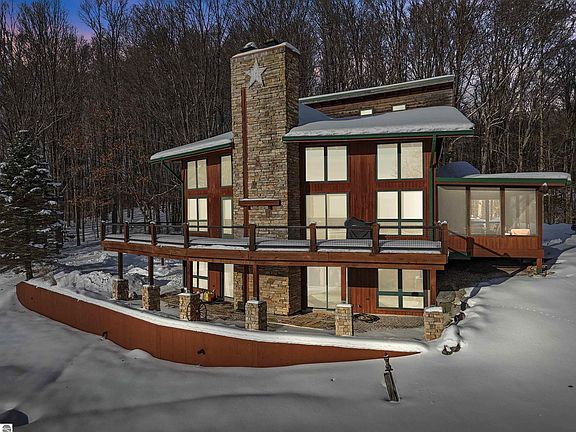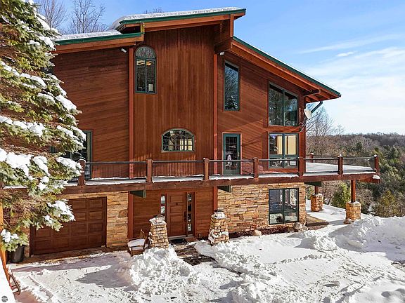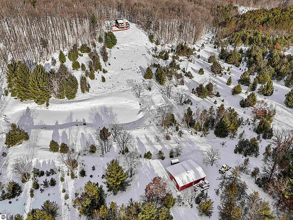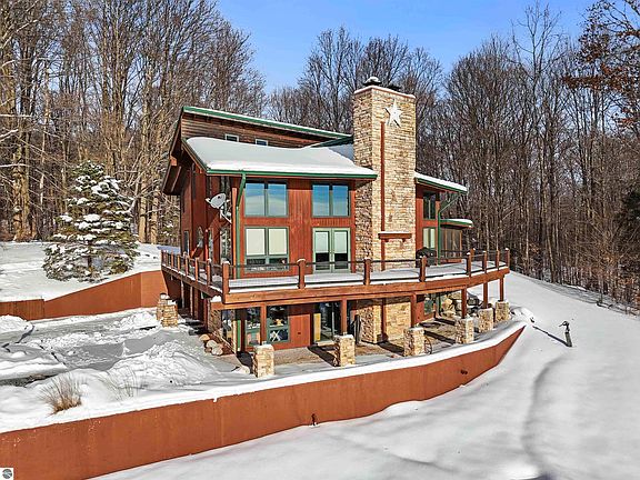 Luxury Living Meets Outdoor Adventure – Stunning Custom Executive Home on 44 Acres! Nestled in the heart of Michigan’s natural beauty, this custom-built executive home offers an unparalleled lifestyle of luxury, comfort, and adventure. Situated on 44 breathtaking acres and just moments from Caberfae Peaks Ski & Golf Resort, this property is a true four-season retreat with stunning panoramic views. Boasting over 3,600 sq. ft. of finished living space, this home features 3 bedrooms and 3 bathrooms, designed for both elegance and functionality. The main-floor primary bedroom provides a serene escape, complete with a shared spa-like bathroom featuring a jetted tub. Upstairs, two additional bedrooms and a full bath offer plenty of space, while the open balcony overlooks the expansive living area below. The chef’s kitchen is a masterpiece, outfitted with cherry cabinetry, granite countertops, and premium appliances, including a Jenn-Air range with hood. Enjoy your meals or unwind in the screened-in porch or on the massive deck, both offering breathtaking views of the property’s rolling landscape. Exquisite Brazilian Cherry hardwood floors and ceramic tile run throughout the home, with plush carpeting in the upstairs bedrooms. Two grand stone gas fireplaces create a cozy ambiance, perfect for chilly nights. Additional features include a wet bar with granite countertops, an attached finished garage, and a pole barn for all your storage needs. Beyond the home, this property is a recreational paradise! With direct access to skiing, golfing, side-by-side riding, and snowmobiling, plus federal land next door for even more outdoor exploration, adventure is right at your doorstep. A private pond adds to the serene charm of this estate, making it a rare and remarkable find.