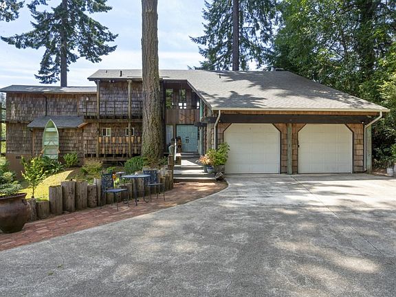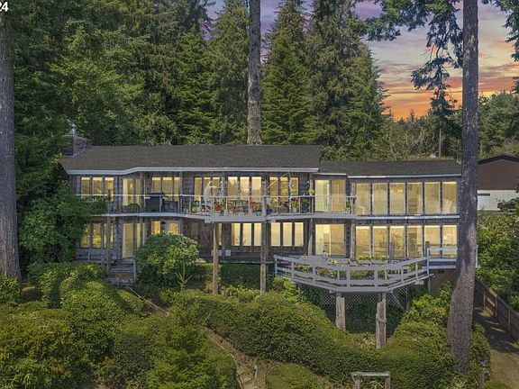 An extraordinary & rare opportunity to own a truly magnificent south-facing home on the picturesque Siltcoos Lake that leaves you north wind protected all year long. This stunning residence was custom built in 1974, featuring a unique timber frame construction throughout. The exterior of the home has beautiful cedar siding & new 50 year roof installed in 2022, making it an eye-catching architectural masterpiece. With 3 bedrooms and 2.5 bathrooms, this home offers ample space for comfortable living & entertaining. As you step through the front door, you'll be greeted by sweeping southern lake views that unfold before you across a dramatic foyer, up the sweeping staircase and expansive living room. The interior showcases the innovative use of large logs, adding to the charm and character of the home. The home has two large masonry fireplaces, one of lava rock on the upper level living room and this other in the lower level bedroom suite and one additional pellet stove on the main level.  A spectacular chef's kitchen awaits, equipped to handle all your culinary endeavors and entertainment needs. Large doors lead out to the expansive main-level deck, offering a seamless blend of indoor and outdoor living spaces. Convenience and luxury meet on the main level, with the newly remodeled kitchen,  living room, bathroom, family room and bedroom.. Additionally, the lower level of this incredible home boasts fantastic amenities and continues to provide mesmerizing lake views from almost every room. Downstairs, you'll find more living spaces and another large deck to enjoy the serene surroundings. The home boasts two primary suites, with both located on the main level, providing flexibility and comfort for residents and guests alike. For those who appreciate lake life there is a gentle slope down the lawn to this property's large dock, a rare full boat house, so you can make the most of your time on the water. Enjoy a double RV port and Barn as well. Come see today!