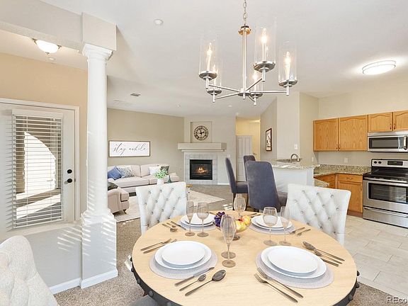 Showings start Saturday! Bright ground level 2 bedroom and 2 bathroom condo with a detached garage in desirable Deer Creek area! No stairs! Sunny corner unit with park-like landscaping outside every window. This is one of the largest units in this community so don't miss your chance. The open floor plan with kitchen opening to living room is perfect for entertaining. Newer stainless appliances in kitchen are ready for your home-cooked meals. Plenty of options for dining with a sunny space for a table or add barstools for extra seating or set up your own bistro set for outdoor dining on the covered patio! The fireplace makes the living space extra cozy. Quiet master suite with large walk-in closet and an adjoining master bathroom with dual sink vanity, soaking tub and convenient linen closet for even more storage. Guests, roommates or children can enjoy their own bathroom! Laundry space conveniently located between bedrooms and a full sized washer and dryer are included! Low monthly HOA fees of $210 include access to fitness center, clubhouse, pool, hot tub and also covers trash and water. Convenient location with just a hop to 470 and within walking distance to shopping, restaurants and entertainment! Schedule your showing for the weekend so you can call this your new home soon!