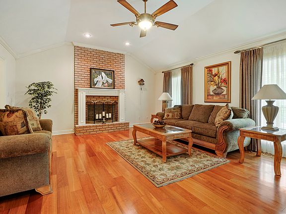 Impeccably built brick home on a landscaped corner lot featuring a side load garage and a circular drive in front of home. 3 bedroom 2 bath, wood floors, formal dining room, and lovely kitchen with breakfast room. Vaulted ceiling in den and master bedroom. Fireplace in den. Covered patio, fenced back yard. Additional consolidated lot behind he fenced yard for more private space. Move in ready. Great condition. Home Warranty Provided for buyers.