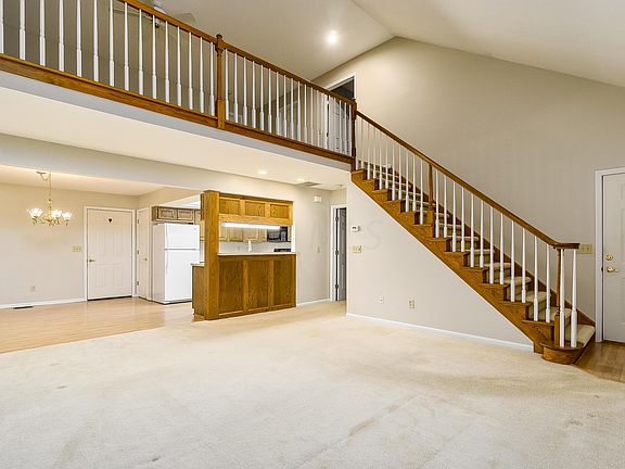 Beautiful condo off Lazelle just west of Rt 23 in small, quiet and private condo complex. Open, airy and bright! THREE LARGE bedrooms, all with huge walk-in closets. First floor master suite. Huge loft overlooking the vaulted great room. Kitchen with eating bar opens to lg dining area and great room. 2 car attached garage in the back with extra room for storage. Freshly painted and ready to move in now! Lg covered front porch overlooks private wooded area. Guest parking very close.
