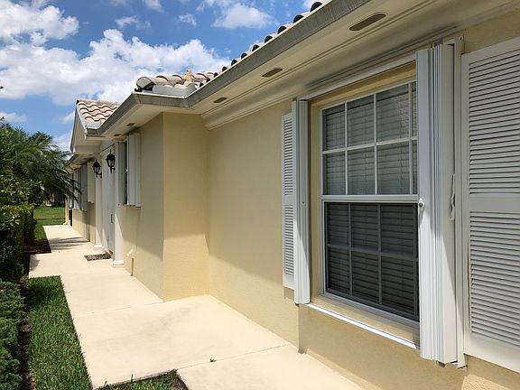 MOVE IN READY! This Villa shows like a model home with so many updates. The exterior and walkway have been completely repainted. The interior of the home has been totally repainted as well with a designer color that gives all of the rooms a fresh look. Crown molding in each of the rooms and new upscale lighting fixtures throughout gives the home a pristine appearance. All of the windows have plantation shutters offering the Floridian flair. From your living area and large master bedroom you have a fantastic view of the peaceful lake. The second bedroom is large and shows with 2 full beds offering plenty of guest space. Picture yourself enjoying a nice meal on your covered patio during the winter months! The garage has been repainted as well with a new epoxy finished floor.