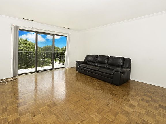 4th floor unit in elevator building. Unit features living room with parquet floor and balcony overlooking forest preserve, 1 bedroom with parquet flooring, eat-in kitchen with granite counters and a full bath. Laundry in building. Parking garage with short wait list and plenty of street parking.