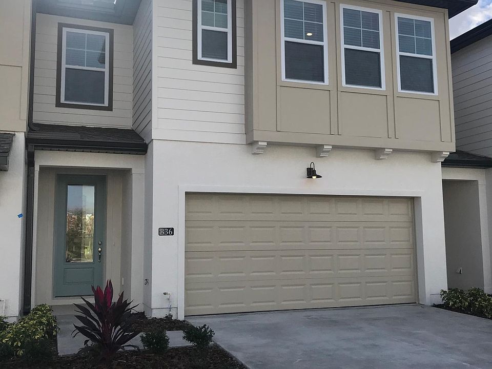 Gorgeous brand new town-home located in the highly desirable, Champions Gate area. This home is located in a prime location and no rear neighbor with water view. This beautiful 3 bedroom home has a sunny bright, open kitchen with plenty of upgrades such as beautiful 42 inch White cabinets, all stainless steel Whirlpool appliances including gas range, dishwasher, and microwave. Enormous island with Quartz counter perfect for gatherings that opens into the great room and dining area. Main living space on first floor features wood look ceramic tile flooring and bedrooms with upgraded Shaw stain resistant carpet for comfort. Enjoy the resort style amenities with a swim at the walk-in community pool, kids' water park, fitness center, 18 hole miniature golf, and beach volleyball court. This home is conveniently located to shopping, grocery stores, Posner Park, Champions Gate Village and Walt Disney World. Rent covers lawn care. Tenant pays for all utilities (electric, water, internet). No smoking, pets allowed if nonrefundable deposit is paid.