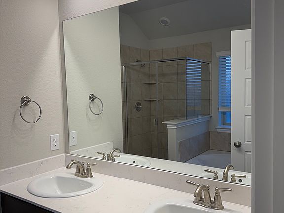 Primary Suite Retreat: Dual-sink vanity, oversized stand shower, bathtub, and walk-in closet
