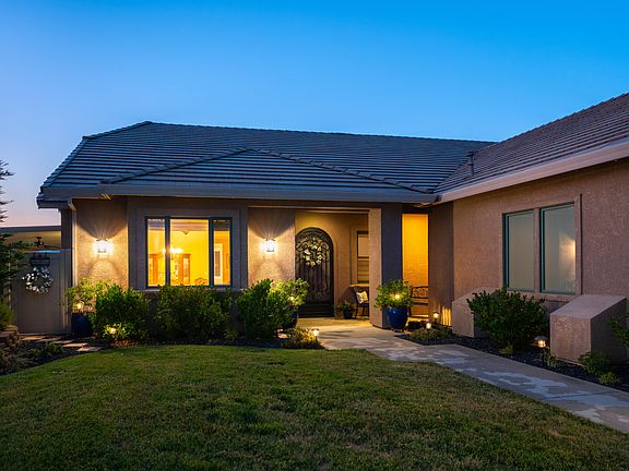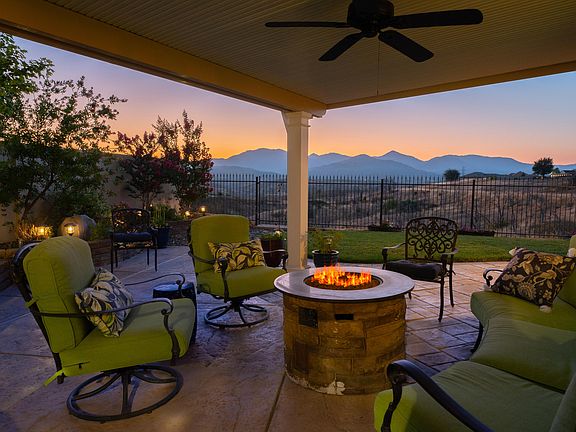 Welcome to your dream home, where luxury and elegance meet in perfect harmony. Begin your journey through the bespoke iron entry screen door, setting the tone for the beauty that lies within. This stunning residence boasts rounded doorways and hallways, complemented by transom windows and exquisite flooring throughout. The luxurious primary bedroom is a true retreat, featuring a spacious layout with French doors leading to a private patio. The custom bath offers dual sinks, a jetted tub, a step-in shower, and a walk-in closet, providing a spa-like experience. With three additional bedrooms, one of which makes a fantastic office, this home offers ample space for family and guests. The living room is centered around a stunning focal point fireplace, perfect for cozy evenings. The formal dining space opens to a covered patio ideal for entertaining. The open and functional kitchen is a chef's delight, equipped with an island, stainless steel appliances, and a breakfast nook. The family room features another charming fireplace in the corner and dual French doors that showcase the breathtaking mountain views. An ample laundry room with more cupboards leads to the oversized three-car garage. The property is beautifully enclosed with wrought iron fencing, adding even more elegance to the home. This home truly shows like a model, offering unparalleled elegance and functionality. Don't miss the opportunity to own this exceptional home. You won't be disappointed.