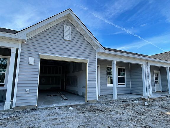 This Palmetto floorplan is cute as a button and perfect for easy, simple living. A cohesive one story home with two bedrooms, two bathrooms, and one car garage. The home is designed with our Milan collection- a mix of airy whites and light grays. Brushed nickel hardware and lighting fixtures throughout, warm toned luxury vinyl plank flooring in the main living areas, zero entry tile shower in the primary bath, and ceiling fan prewires in all rooms. The kitchen is decorated with light gray cabinets, white quartz counters with veining, and stunning backsplash tile. The back covered porch faces a beautiful pond, perfect for relaxing and enjoying the Charleston weather.