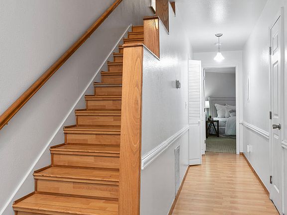 2 story townhome in a quiet area surrounded by mature trees. Tile entry, and laminate floors throughout Living room with soaring vaulted ceiling, cozy brick front fireplace, picture window for plenty of natural light, wide open floor plan perfect for entertaining. Big kitchen features tile floor, work island, walk-in pantry & updated cabinetry. Upper level south facing deck off dining area.
