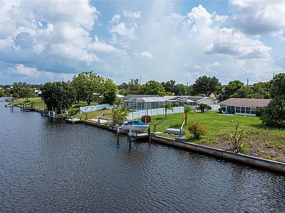 HERE IT IS! YOUR EXPANSIVE SALTWATER CANAL VIEW WITH A SEWALL, TREX DECK DOCK, BOAT LIFt & PAIR OF DAVITS!!!! SOLD TURNKEY FURNISHED! POWER BOAT ON LIFT IS INCLUDED! (10K Value) Features much living space with a nice size living room and a huge family room, so bring your family. Galley style kitchen has breakfast nook and a flip up breakfast bar. Large master suite has a deep closet, an ensuite, view of the canal and sliding glass doors to the family room. Guest bedroom has a wall close and ceiling fan. The garage has a workshop and the laundry area with washer/dryer. Jump in the boat and go for a spin, just a short ride to CHARLOTTE HARBOR. If you have time you can go from Charlotte Harbor to BOCA GRANDE or the GULF OF MEXICO. Concrete curbing, tropical palms, banana trees and fragrant gardenia's gives you that Florida tropical feel. Quick list of features include NEW AC 2012, DOCK NEW 2017, ROOF 2005, and extra Plywood to cover exterior windows & Sliders. This Southwest Florida location is ideal for year-round enjoyment of boating, fishing, golfing, Several Gulf beaches, beautiful natural resources, many restaurants, parks, public tennis courts and shopping. Cultural events are held throughout the year, multiple baseball parks are also located close by. Home is located just 11 minutes from Tampa Bay Rays Training Stadium, less than 3 miles from shopping mall & many Parks, 35 minutes from multiple Gulf Beaches, Punta Gorda regional Airport is located 10 miles away which is serviced by Allegiant air. Fisherman's Village and Historic District are about 7 miles away with multiple restaurants and shopping. CALL TODAY TO SCHEDULE YOUR PRIVATE TOUR!