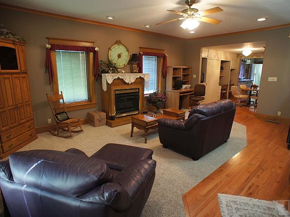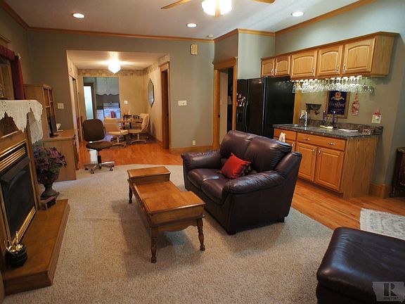 Large 2-story home in central Webster City with family room master bedroom and bath plus laundry on main level. Master bedroom has large walk-in closet. Formal dining room plus 71/2x12 eating area off kitchen. Beautiful woodwork - open stairway. 8x24 front porch, 10x12 back porch plus 2 patios. There is an additional 101/2x23 basement family room w/bar plus 3/4 bath. Kitchen appliances stay. Washer/dryer plus some furniture may be available for purchase. Shop area in garage. Additional cement parking off alley. The family room/master bedroom addition was built in 2003.