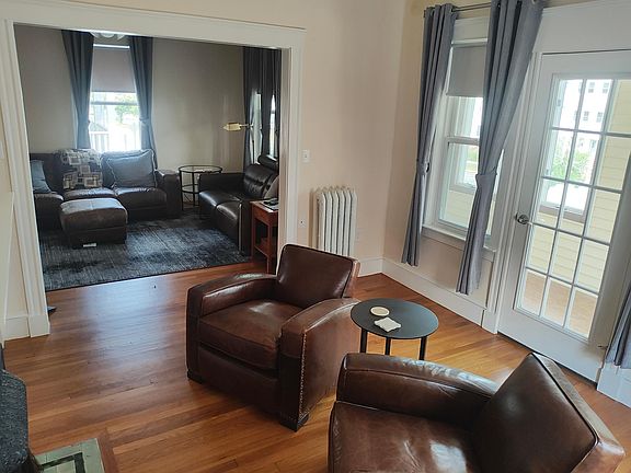 Beautiful, Bright & Sunny 7 room, 2 bedroom apartment in a quiet, beautifully renovated and landscaped 2-family home in Wellington section of Medford. Large 1220 sf unit with large rooms, high nine-foot high ceilings and private entries with a private, newly renovated rear porch. Recently renovated eat-in kitchen with granite countertops and walk through pantry, large dining room with built-in hutch, large living room which opens to the entry foyer, and new bathroom. Lots of closet space. Gleaming hardwood floors in all rooms including the kitchen with tiled bath. The house is fully insulated with all new insulated windows and doors and new, efficient gas heat and hot water. Includes all energy efficient appliances including dish washer, refrigerator, microwave, glass top stove, and clothes washer and dryer. Ceiling fans in bedrooms and living room. All new wiring and plumbing. Non-smokers only / No pets. Close to Wellington Station. Also available furnished for $3700/mo. Includes off-street parking Renter pays electric and gas for heat and hot water. Owner pays cold water and sewage No pets No smoking