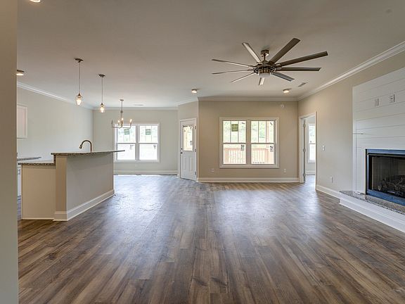 This 3-bedroom, 2-bathroom open floor plan design is sure to impress. The main living area features a gorgeous custom shiplap fireplace with propane logs that opens up to the kitchen and dining area, making a cozy space for entertaining family and friends.