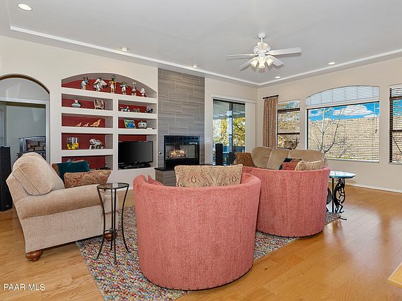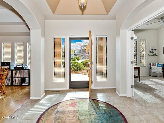 The appeal doesn't stop at the curb! Located in the all Custom Home Summit neighborhood of Prescott Lakes this 2262 square foot 3 bedroom/2 bathroom home has been updated and meticulously maintained. Light filled and inviting, this home offers a split floorplan and lots of room for entertaining or relaxing. The Cook's Kitchen has been upgraded and is central to the Living and Dining areas. One of the guest bedrooms is currently utilized as an office space and has a walk-in closet for storage, along with a pocket door for direct access to the guest bath. The Owner's bedroom is spacious and features 2 walk-in closets. Skylights in the Owners' bath and Laundry room give plenty of light, and the high ceilings provide a sense of openness throughout the house. An outside deck off the Open