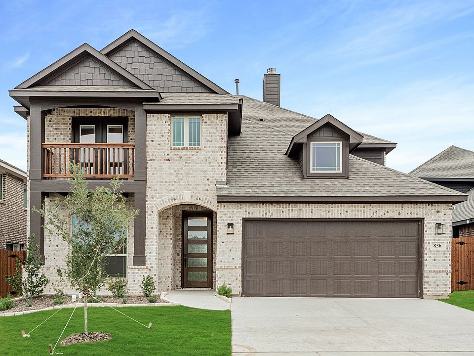 NEW! NEVER LIVED IN HOME. Beautiful Bloomfield home offering 5 large bedrooms, 3 baths, Powder Room, Study with glass French doors, and a Game room flex space upstairs. The spacious, open-concept Kitchen off the Family room features window-lined walls that look out to the backyard, a Stone-to-Ceiling Fireplace w Cedar mantel, and durable Laminate Wood floors. Kitchen includes an oversized island with a gas cooktop, pot & pan drawers, trash can pull-out, elegant Quartz countertops, and tons of storage from extensive cabinetry & the massive walk-in pantry. This is a Texas-sized kitchen! Downstairs Primary Suite with a 5-piece bath and a walk-in closet; 4 secondary bedrooms upstairs including a Jack n Jill bath. Other features include a 2-car garage, classic brick exterior, upstairs balcony, blinds, 8' front door, and much more! Situated on an Interior, Greenbelt lot. Neighborhood amenities include a Dog Park, a play park & walking trails. Visit our model home at Godley Ranch today!