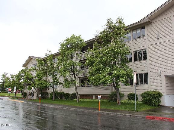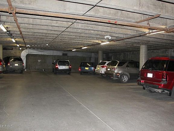 Secured building with view to Park strip, downtown, & inlet. LOADS of storage space within the home plus an extra indoor, heated storage space. Covered & secure garage parking. Beautiful wood laminate flooring, spacious kitchen w/pantry. Large master bedroom w/WIC. Bonus balcony space. Exterior of the building is in process of painting. Maintained impeccably inside and out.