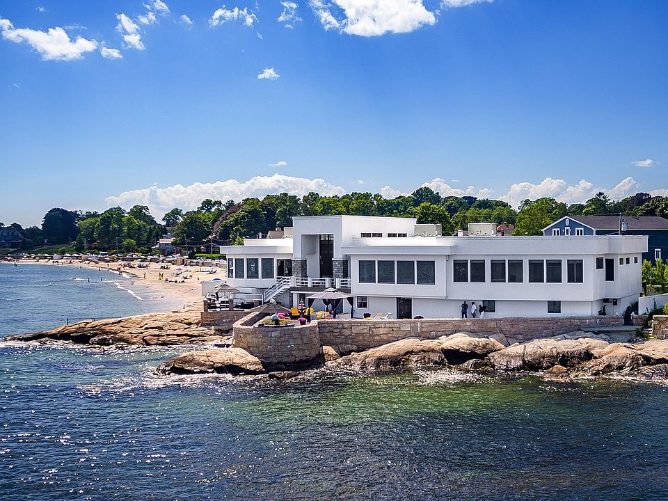 Welcome to "Villa El Casino" - When you first enter the double carved rosewood doors, you know this home is in perfect harmony with the water. The foyer and formal dining room with high ceilings open to a spacious living room with a wet bar for entertaining. Floor to ceiling coral stone from Key West Florida surrounds the fireplace and gleaming marble floors cover most of the home. Water views, a pageantry of sunrises, sunsets and awe inspiring moons weave water dreams and syphonies as timeless as a Stradivarius. An open family room with fireplace, office, chef's kitchen with stainless steel appliances, granite counter tops, wine cooler, breakfast bar plus informal dining area are first level highlights. Through the sliding glass doors, you can dine al fresco on the covered terrace basking in the cool ocean breezes. All of this with fabulous water views! The Master suite has a gas fireplace, dressing area, walk-in closet and spa like master bath. The additional two en suite guest bedrooms also share the remarkable Long Island Sound views . This home offers multi-level tiered terraces for relaxing while you enjoy an array of seascapes. Take the elevator to the fully finished lower level with a large open area where you will enjoy fresh breezes and salty scents of the sea gently passing through, keeping you cool throughout the summer months. In addition, there is a beach side pool with stunning views and outdoor amenities for unparalleled luxury living. Just a short distance away from the pool you can walk into the summer kitchen for lunch in the open area with media and a lounging area. Take the steps down from the terrace to the sandy beach for long walks. The real bonus is having room for 5 or more cars in the lower level three-bay garage. This "one of a kind waterfront beach home" is accessed through two security gates with a driveway that curves through to your own private oasis. Seaside living is about the relationship between the home and the water and this home has it all!This home comes with boat lift to accommodate up to a 45 foot boat. This is the first time this magnificent waterfront home is being offered for sale.