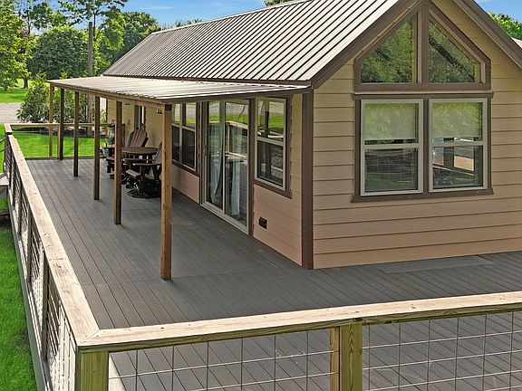 Fully furnished with an impeccable selection of decor, this cottage is move-in ready, allowing you to immediately indulge in the lakefront lifestyle. The wrap-around composite deck is an entertainer's delight, perfect for hosting lively gatherings or enjoying peaceful evenings under the stars. The covered front porch adds a classic touch, ideal for sipping your morning coffee .