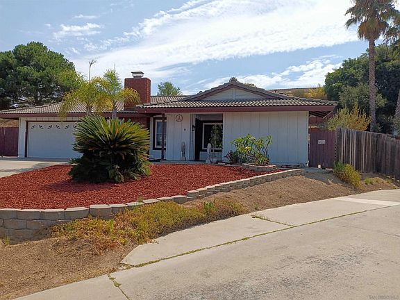 Welcome to your new home! Tucked away at the end of a tranquil cul-de-sac in the Oak Hill area of Escondido, this lovely single-story residence offers a warm, inviting atmosphere offering four bedrooms and two full bathrooms that provide comfort and versatility for your family. The primary suite offers a serene space to unwind, including a stone tile walk in shower. The expansive backyard is neatly manicured and offers you the opportunity to create your ideal outdoor oasis. Inside, you'll find approximately 1,330 square feet of living space including a sunny and airy kitchen boasting beautifully refinished original cabinets, complete with a breakfast bar that flows seamlessly into the dining and living areas—perfect for cozy gatherings or entertaining guests. Additional features include central air for year-round comfort, ceiling fans, and a spacious two-car garage with ample storage. For those with recreational toys, there’s convenient gated side yard space for an RV, boat, or extra storage. The backyard features two covered patio areas for relaxing or hosting gatherings, and a terraced hill with trees and shrubs for privacy. With the large lot you could envision a pool, play area or simply to enjoy the extra space with your pets. While close to downtown Escondido, freeways, schools and shopping, this house is located in a quiet, friendly neighborhood making daily life both convenient and enjoyable. Whether you're hosting gatherings or simply savoring quiet moments - 836 Raulston Terrace is a great place to be!