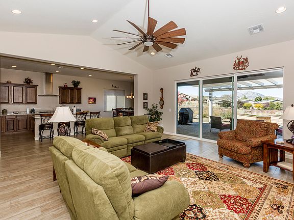 Views Views Views!! Panoramic views from Granite Mountain All the way to the San Francisco peaks and no houses behind you. This 2 Bed w/study/Possible 3rd Bedroom has been Incredibly Upgraded! This Sonoma Model has upgrades Galore, including the Gourmet Kitchen Package-Beautiful Granite Counters, Stainless Appliances, Wood Style tile plank flooring throughout the Main Living Areas, Surround sound, IR package and wired ethernet plus a 4 Ft. Extension in the Garage! The backyard boasts a huge Pergola with pavers and 2 large raised beds on drip system.This home is move in ready and in immaculate condition-Only 2 Years Old!
