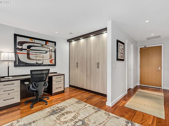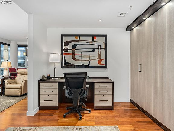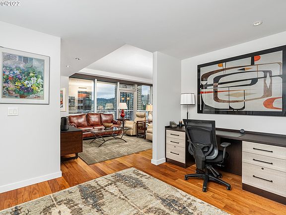 Stunning, updated condo in the Meriwether. 1 bed+study home features a spacious kitchen that is ideal for entertaining while soaking in the spectacular river & West hills view. Thoughtful updates throughout, Pedini cabinetry in bathrooms & kitchen, custom island. Tv Included, other items available for sale, contact LA. California Closets custom desk & wardrobe w/extra storage in study. Enjoy the conveniences S. Waterfront offers; walking trails, street car, gyms, restaurants, tram, OHSU & more!