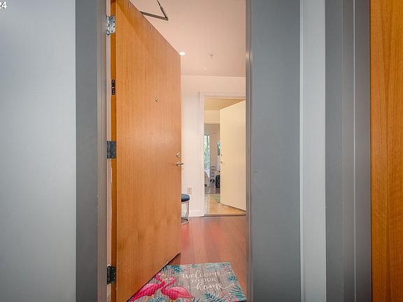 Welcome to your chic urban oasis in Portland's buzzing South Waterfront! This stylish one-bedroom condo is the perfect blend of comfort and convenience, offering 911 square feet of smartly designed living space. Step inside and you'll be greeted by natural light pouring in from two corners, creating a bright and airy atmosphere. The efficient floor plan makes the most of every inch, with a flexible great room perfect for both relaxing and entertaining. The bedroom, tucked away for privacy, features a Jack and Jill bathroom and ample storage space. Living here means embracing the vibrant South Waterfront lifestyle. Imagine starting your day with a stroll along the Willamette River, just steps from your door. Later, you might hop on the Portland Streetcar for a quick jaunt downtown or take the Oregon Health & Science University tram for a breathtaking ride up the hill. Foodies will love the array of wonderful restaurants nearby, while nature enthusiasts can explore the numerous parks and trails in the area. Don't miss the local farmers market – it's a great place to stock up on fresh produce and mingle with neighbors.The Meriwether East building offers top-notch amenities to enhance your living experience. Enjoy concierge services, a resident lounge, and even a rentable guest suite for out-of-town visitors. Your deeded parking spot in the secure garage provides peace of mind, with extra space for bikes and kayaks.This condo isn't just a home – it's a ticket to a dynamic, convenient, and fun-filled Portland lifestyle. Don't let this opportunity float away!