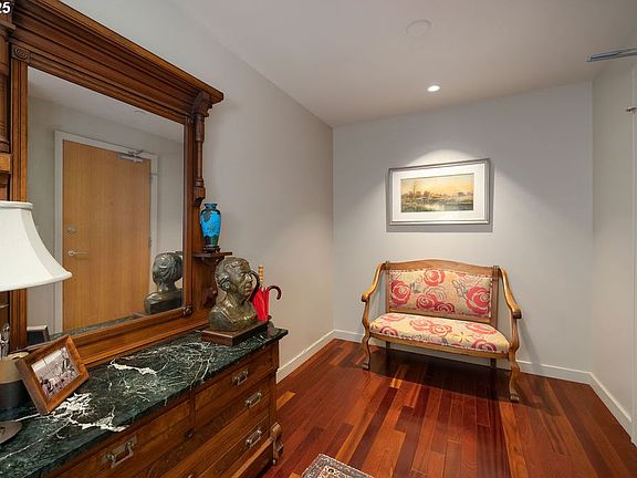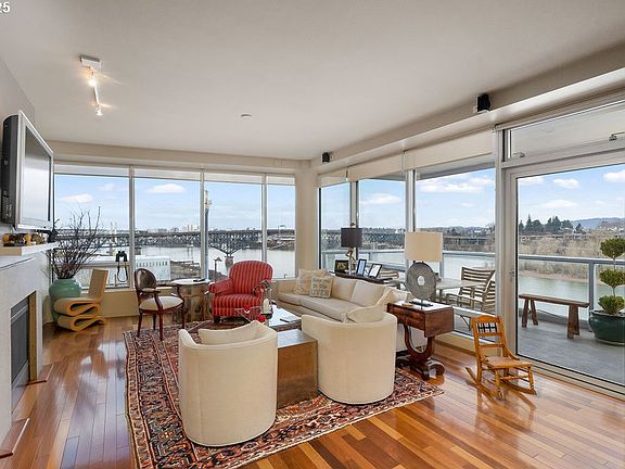 Quiet, clean South Waterfront! Breathtaking city, river and mountain views by day, twinkling city lights at night from every room and your large riverfront balcony (with gas barbecue). Pristine northeast-facing unit features great room living and dining, a separate good sized den, wall to wall windows overlooking the panoramic view, a gas fireplace and rich hardwood floors. Redone kitchen boasts a huge walk-in pantry, breakfast room and center island. The sizeable entry foyer with guest bath and three closets leads to two spacious bedroom suites and a laundry room. Beautiful condition, elegant finishes and high ceilings throughout - you can’t see this unit and not absolutely fall in love with it.In addition to abundant storage in the unit, your large storage room, near the two side-by-side parking spaces, could be outfitted as a wine cellar. Building amenities include concierge services, private street guest parking, Meriwether guest quarters, welcoming gardens and grounds, and first-floor library and lounge. Abundant South Waterfront amenities include streetcar and tram access, parks, a river walk, restaurants, OHSU and an athletic club. Measurements approximate