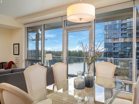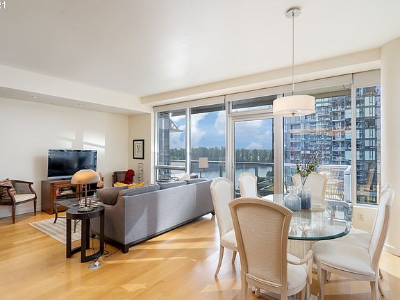 SW corner unit w/ walls of windows to showcase the river view. This spacious one bedroom + den luxury condo in Portland's South Waterfront neighborhood features high-end modern finishes, hard wood floors & gourmet kitchen. This 120 sq. ft. balcony provides gas hook up for BBQ's, space for entertaining w/ colorful city, Mt. Hood & river views! Secure, deeded parking space & concierge services. Easy access to restaurants, shops, trails, farmers market, dog park, streetcar, OSHU & aerial tram.