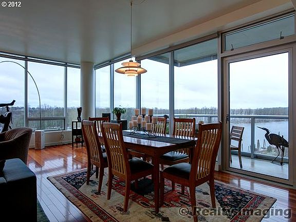 Rare opportunity to live in one of the finest Meriwether condos. Beautiful South and East views to Ross Island, river and Mt. Hood. Amazing upgraded finishes throughout: Valcucine kitchen, full granite, top of the line appliances, Smart Home controls, upgraded hardwoods, custom cherry built-ins, Portland Closets, wine cellar, keyless entry, much more. Truly Exceptional!