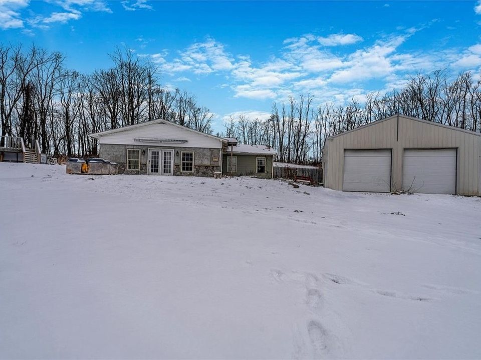 Welcome to this 2-bedroom, 2-bath home on 2.5 private acres in Jefferson Township! This open-concept home features a large kitchen with white cabinetry, a tile floor, and ample counter space. The primary suite offers skylights, a walk-in closet, an en-suite bath with double sinks, and a tub/shower combo. The second bedroom is well-sized, and an additional interior room provides flexible space for storage or an office. The detached garage has high ceilings, a workbench, and shelving, making it ideal for storage, a workshop, or car enthusiasts. There is also utility space and laundry hookups. Enjoy the peaceful surroundings with mature trees, an above-ground pool, and a long private driveway. Some repairs and updates are needed, but there is potential! Close to Saxonburg, Butler, and major routes. Don’t miss this opportunity—schedule your showing today! Search the address on YouTube for a full video walkthrough tour.
