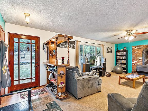 Wonderful country living only five minutes from town in a peaceful setting on 1+ level acre in a single level three bedroom home with many updates. Mountain and forest views! RV Pad, out buildings, fire pit, garden, chicken coop too! Newer windows, roof, heat pump and well pump. Peaceful Country Living! nyone considering purchasing this property should perform their own investigation into the uses and condition of the property, including room sizes, property lines, zoning and growing regulations.