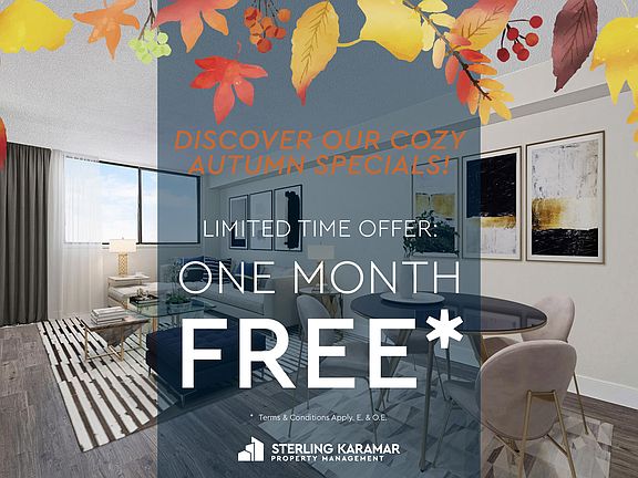 AboutDiscover Our Autumn Specials | Enjoy One Month FREE on a 13-Month Lease!* Enjoy this quiet, residential, Peterborough neighbourhood when you make 836 Talwood Drive your next home. This Peterborough apartment offers residents studio, 1, 2, and 3 bedroom suites to choose from. This Peterborough apartment offers residents studio, 1, 2, and 3 bedroom suites to choose from. Enjoy a short 10-minute commute downtown by car or bus and enjoy everything Peterborough has to offer.Community Enjoy both Kinsmen park and civic centre located directly across the street. Its close proximity to Fleming College is convenient for attending students. 836 Talwood Drive is a great location to make your next home in Peterborough. Rental ProcessWe are open for business and have refined our online rental process. View our 360-degree virtual tours, which give a general sense of unit layouts and finishes. We also encourage you to schedule a personal showing with our leasing specialist who would be happy to safely tour you through amenities and available suites. Online Payments and CommunicationsProperty Vista resident portal is available to ensure the ease of rental payments, maintenance requests, and communication with property management all accessible online from your personal device.*Pricing, availability, and incentives are subject to change. Conditions apply. Suite features may vary. Images and virtual tours may not reflect actual suite finishes. E. & O.E. Community Amenities Elevators Pet friendly Balconies On-Site Professional Management Security cameras On-site Laundry Facilities Suite Amenities 1, 2, 3 bedroom units Utilities Included Heat Water