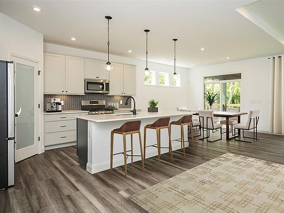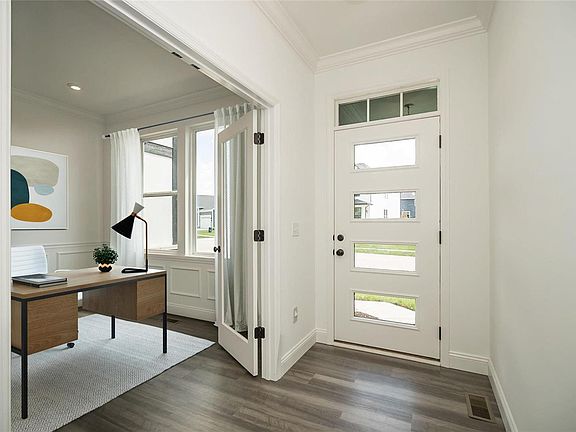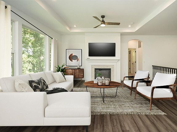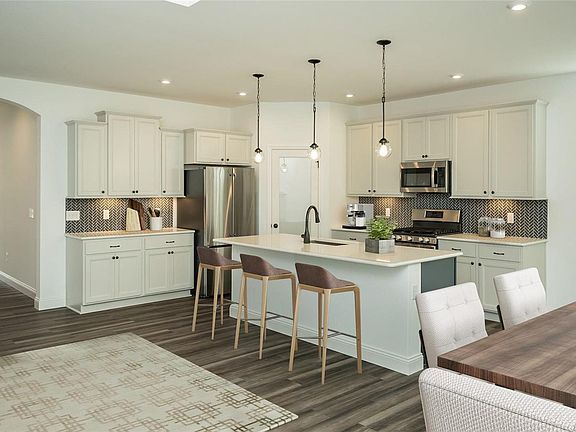 New Construction by Fischer Homes in The Streets of Caledonia, this Sidney Urban Modern plan offers a welcoming covered front porch, an open floor plan that features a family room with tray ceiling and a electric fireplace open to the kitchen with stainless steel appliances, upgraded cabinetry with 42 inch uppers and soft close hinges, quartz counters, walk-in pantry, and walk-out morning room to the deck. Private study with french doors. Homeowners retreat with a tray ceiling and an en suite that includes a double bowl vanity, oversized walk-in shower with dual shower heads and walk-in closet. There are 2 additional bedrooms on the main level that share a centrally located hall bath. Full finished walk-out basement with rec room, the 4th bedroom and full bath. Massive garage 3 bay garage with storage or 4th small car tandem garage. You decide.