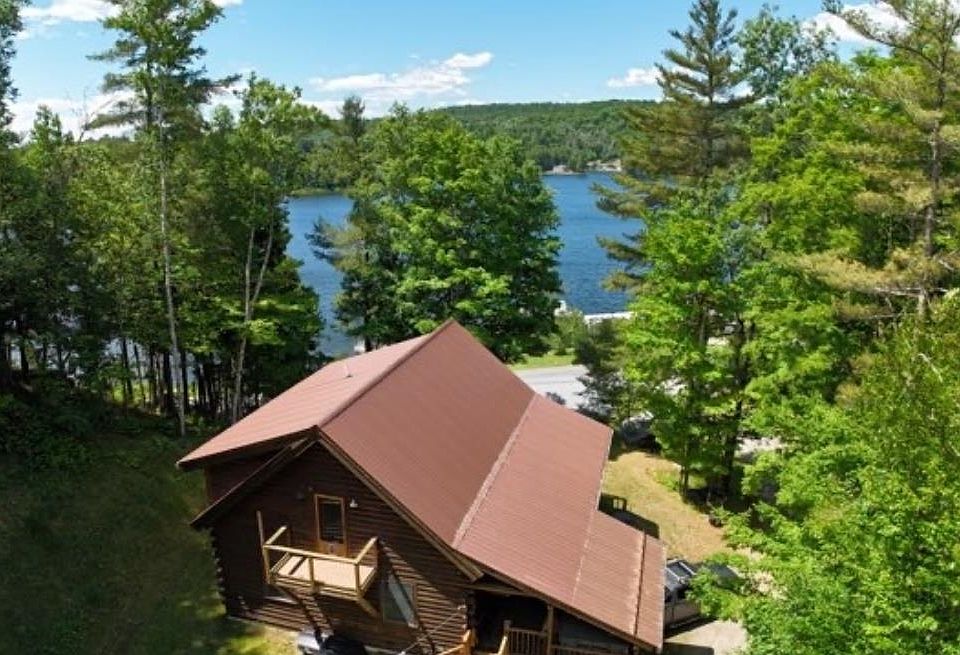 Experience the timeless charm of lakeside living at this exquisite Vermont retreat. Nestled along the serene shores of Woodbury Lake, this property offers the quintessential New England lifestyle. A three-level Post & Beam log home, crafted with meticulous attention to detail, beckons you to unwind in its rustic embrace. Beautiful wood floors, fashioned from trees harvested on-site, create a warm and inviting ambiance throughout. Adjacent to the main residence, a convenient two-bedroom guest cottage provides ample space for friends and family, ensuring privacy and comfort. The heart of the home lies in its open living spaces, and vaulted ceiling where windows bathe the rooms in natural light, offering broad views of the lake waters just beyond your beachfront. Retreat to the second-floor primary suite, where a private office overlooking Woodbury Lake offer the perfect spot to savor your morning coffee. Two bedrooms on the main level, a bath with laundry and wrap around balcony complete with a hot tub. The lower level includes a large rec room, full bath, storage and full kitchen. Radiant heat throughout and a propane wood stove are features youll enjoy during the off season. Step outside to discover a sandy beach area and dock or gather around the lakeside fire pit under starlit skies. Conveniently situated with paved road frontage, this property offers year-round accessibility, making it a retreat for all seasons.